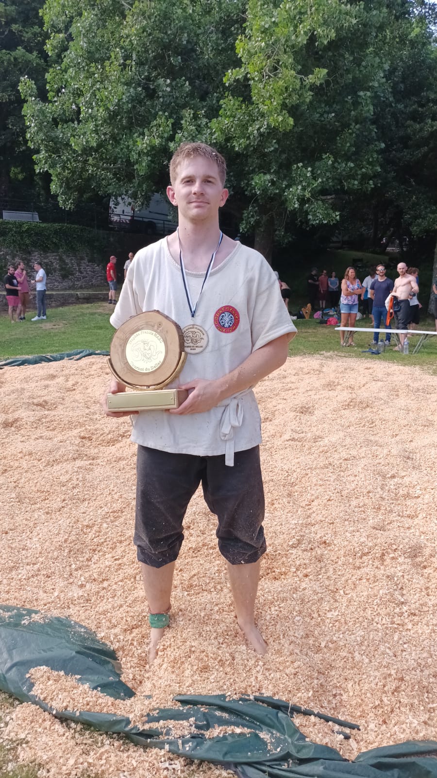 Ludovic gagnera son second combat face à Esteban MOREL de la skol Kemper. Le dernier lutteur sur le banc n’est pas le plus facile : Thomas KEREBEL (skol Plouzané) compte bien gagner ce trophée « chez lui », le dernier combat de la catégorie est donc très-très serré entre ces deux lutteurs qui se connaissent par cœur. Le combat ira jusqu’au kouezh et c’est Ludovic Lagadec qui aura l’honneur de soulever le magnifique bélier de bois et de corne.