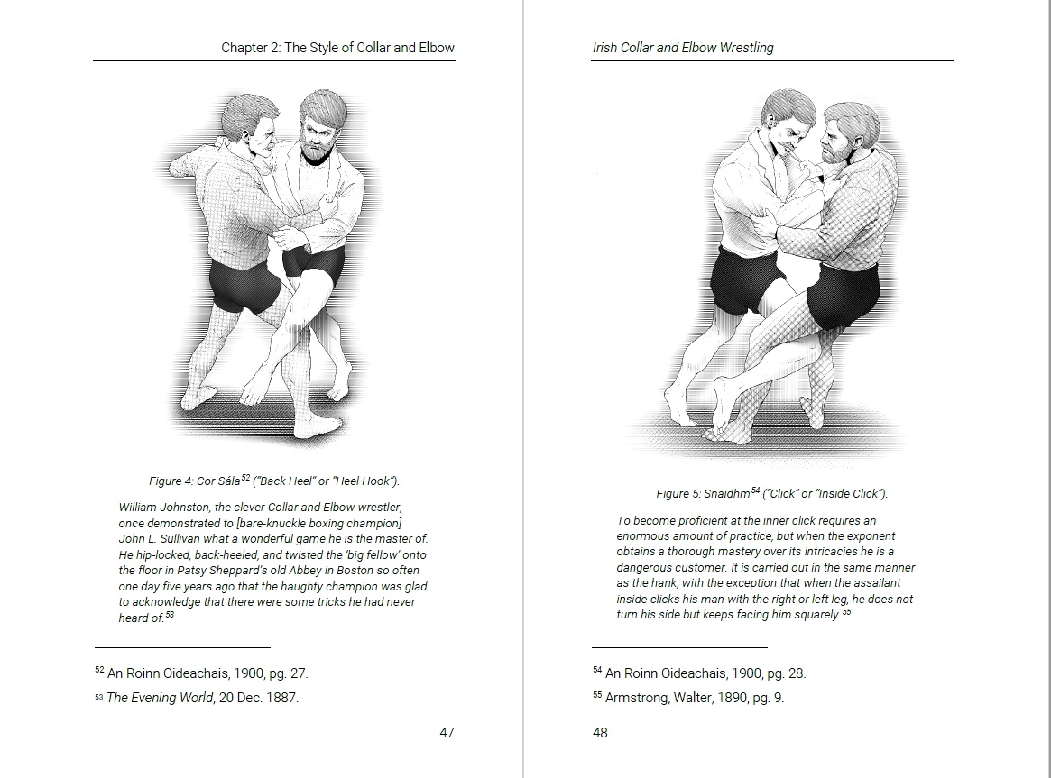 L'auteur est un irlandais, Ruadhan MacFadden, un chercheur indépendant en anthropologie culturelle, qui a pratiqué de nombreux arts martiaux (surtout le Ju-Jitsu brésilien). Ce livre de 216 pages en anglais explore l'histoire du style Collar and Elbow, sa popularité au 19ème siècle, ses stratégies et techniques, comment il était intégré dans les communautés rurales d'Irlande. Le style Collar & Elbow est assez similaire à la lutte cornique et de nombreux témoignages du 18 et 19ème siècles font référence à des rencontres entre lutteurs des deux rives, et également à la participation de lutteurs irlandais aux tournois de lutte cornique organisés à Londres lorsque le style était très populaire. |